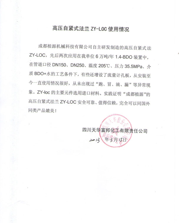 華強化工集團股份有限公司使用證明